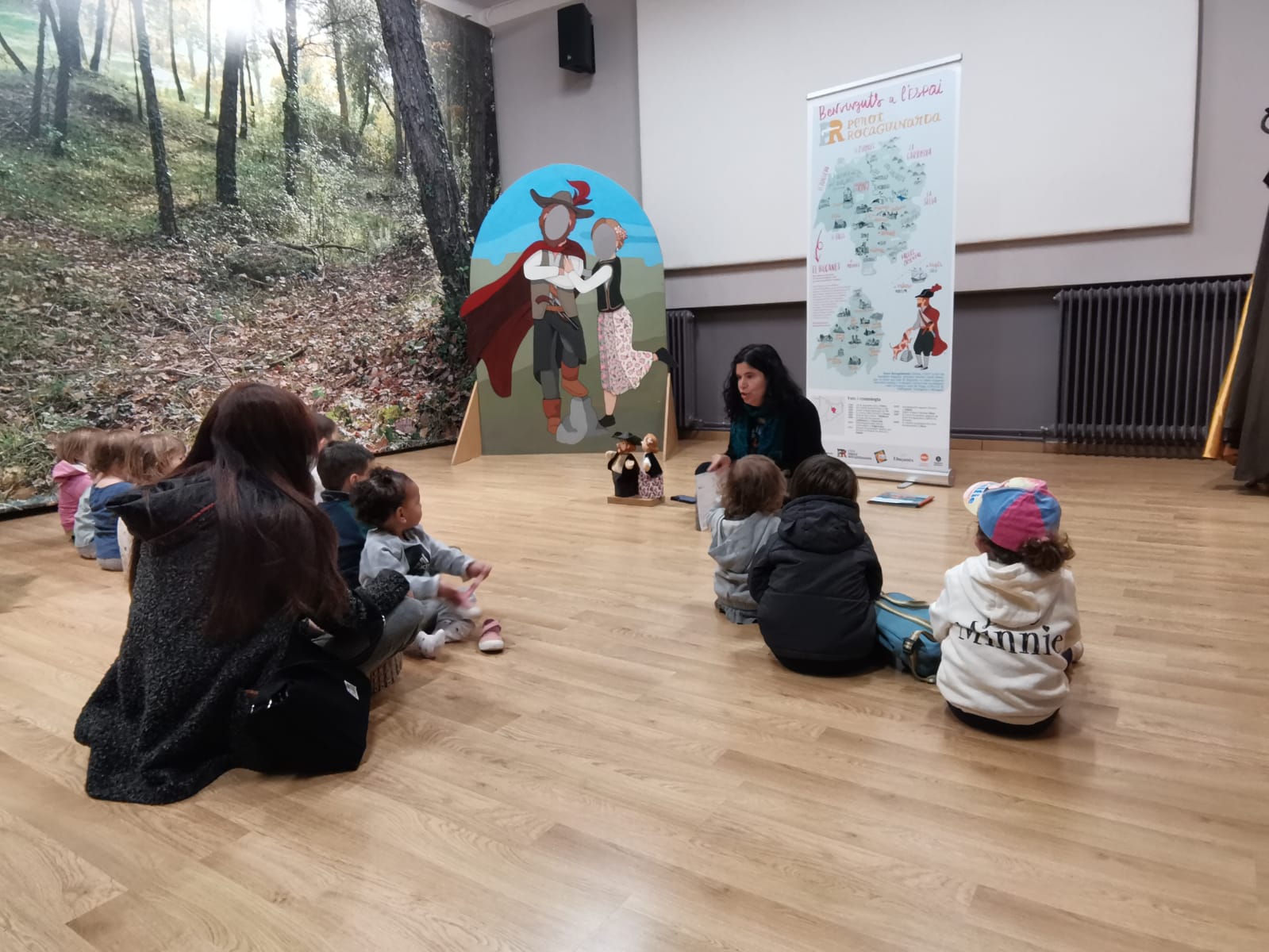 A poc a poc es van asseure per escoltar, alguns amb molta atenció i responent preguntes i tot, el conte de "La Ploma Vermella", on s'explica la història del bandoler Perot Rocaguinarda i de la Mercè de Pecanins.