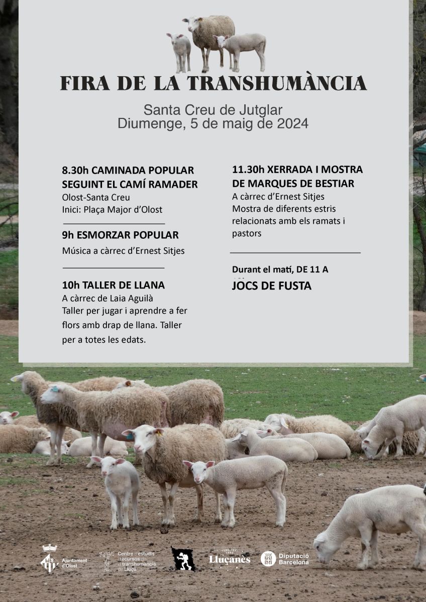 El proper diumenge 5 de maig se celebrarà una nova edició de la Fira de la Transhumància a Santa Creu de Jutglar.