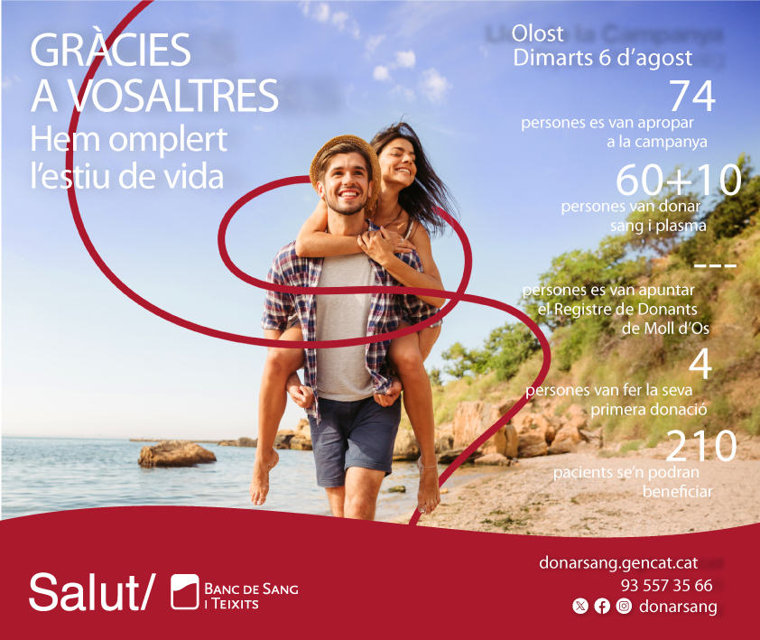 Gràcies a totes les persones que van participar el dimarts 6 d'agost s'ha pogut recollir sang per poder ajudar a 210 pacients.