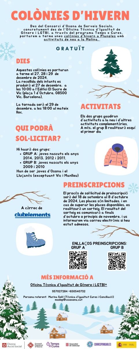 Colònies d'hivern gratuïtes el 27, 28 i 29 de desembre
