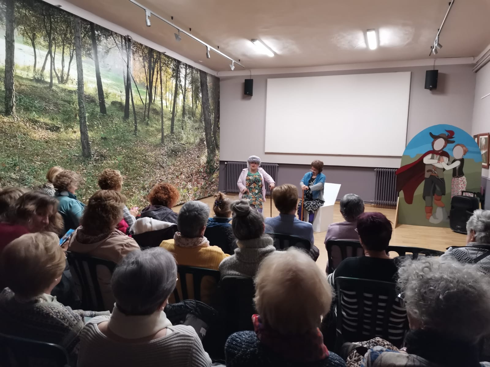 Foto del Teatre Fòrum del 20 de novembre a l'Espai Rocaguinarda i dels assistents al Taller d'Espelmes del divendres 22, que es poden veure en el cartell.