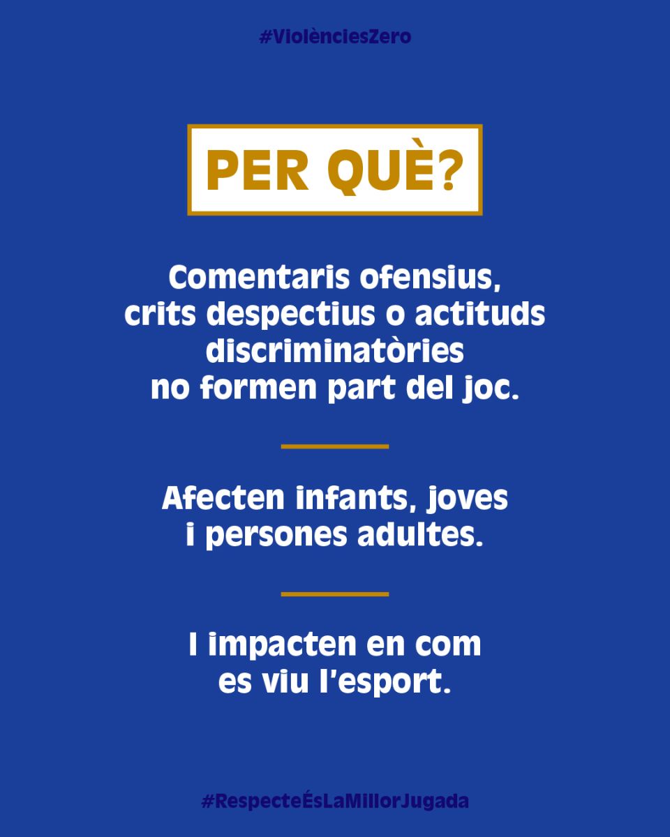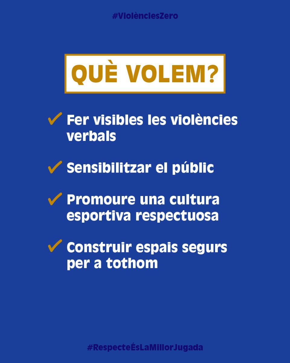 La campanya posa el focus en la necessitat de garantir que l’esport sigui un espai segur, inclusiu i lliure de violències masclistes, LGTBI-fòbiques, racistes o d’altres actituds discriminatòries. Amb aquesta premissa, la iniciativa centra la mirada tant en el terreny de joc com en les grades, i especialment en el paper del públic i de l’entorn, conscients que molts comportaments intolerants es produeixen fora del camp i sovint es normalitzen com a part de l’espectacle esportiu.